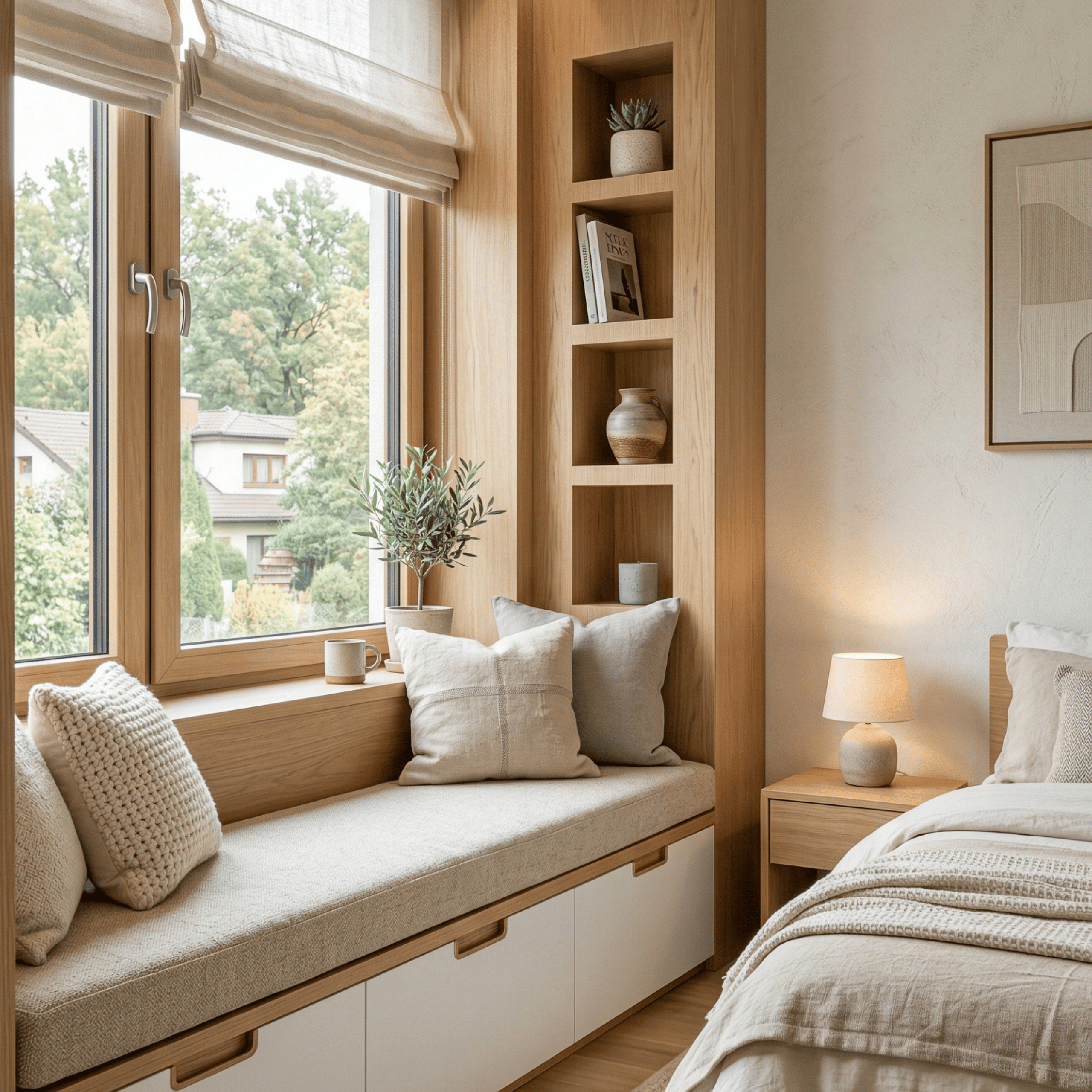 Bay windows are where light, space, and serenity come together. Extending gracefully outward, they invite abundant natural light while creating a cozy nook that enhances both comfort and style.